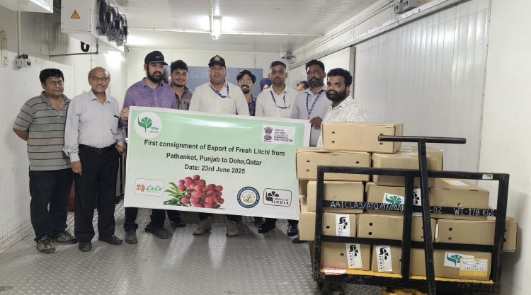 In a significant boost to India’s horticultural exports, the Agricultural and Processed Food Products Export Development Authority (APEDA), under the Ministry of Commerce & Industry, Government of India, in collaboration with the Department of Horticulture, Ministry of Agriculture and Farmers Welfare, Government of Punjab, facilitated the flag-off of the first consignment of one tonne of rose-scented litchi from Pathankot, Punjab, to Doha, Qatar, on 23rd June 2025.