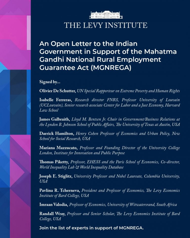 Drafted by the Levy Economics Institute and signed by leading global experts, the letter calls for the protection and strengthening of MGNREGA — enacted in 2005 as the world’s largest rights-based public employment scheme, guaranteeing 100 days of wage labour to rural households on demand.