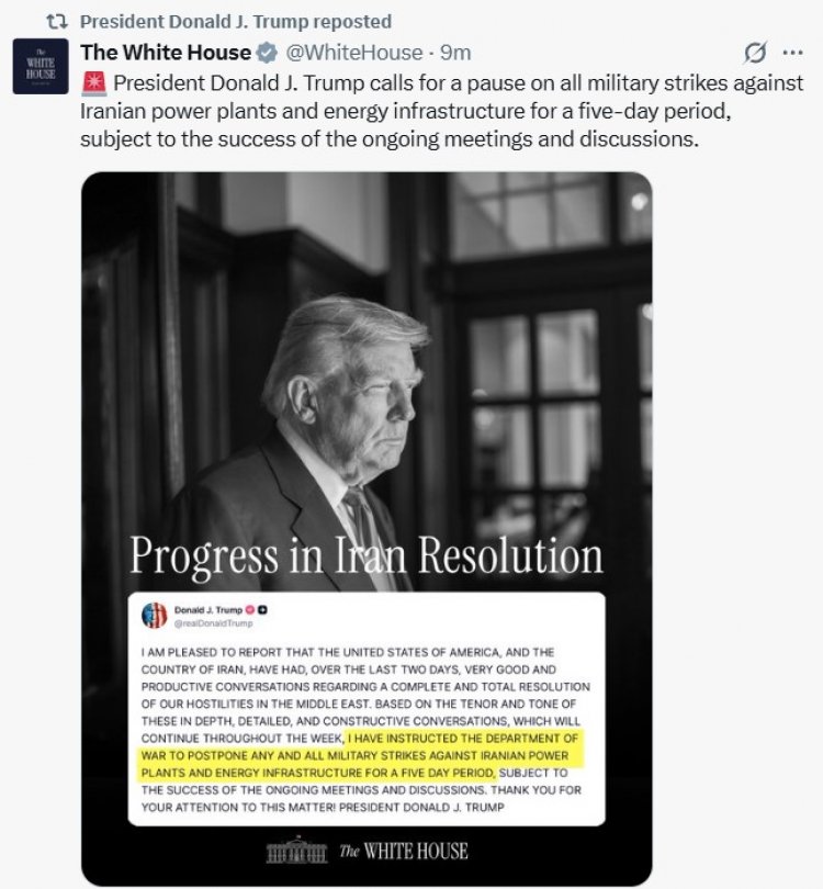 President Trump delays military strikes on Iranian power plants for 5 days after "productive" talks. Oil prices slide as Middle East tensions ease. Read more.