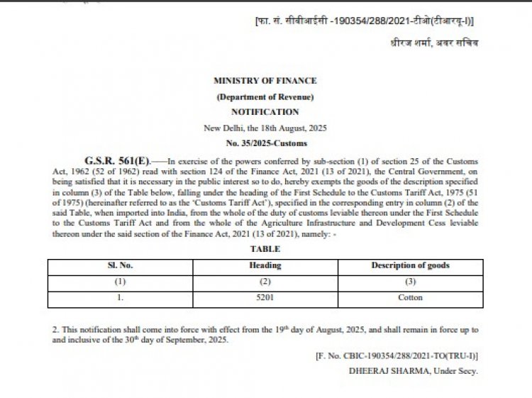 Sources indicate that until a week ago, some officials in the Textile Ministry opposed the removal of the import duty. However, in a swift reversal, the Finance Ministry issued the decisive notification on August 18. Notably, the CCI, which both procures cotton at MSP and supplies the market, has also endorsed the removal of the import duty.