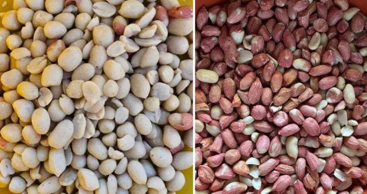 Goundnuts with high blanchability (left) and low blanchability (right).