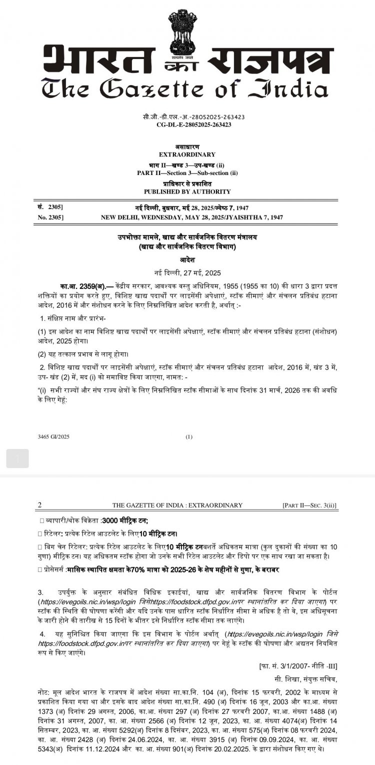 In a move to stabilize wheat prices and ensure adequate domestic availability, the central government has imposed stockholding limits on wheat for traders and retailers. According to a notification issued on Wednesday, traders are now restricted to holding a maximum of 3,000 tons of wheat, while retailers are limited to 10 tons. This measure aims to prevent hoarding and speculative trading, thereby enhancing market transparency and supply.